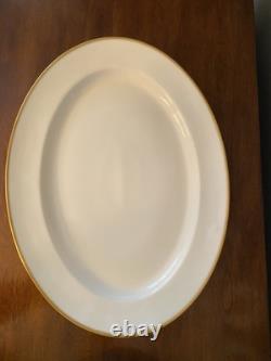 This antique dinner set is a beautiful and luxurious addition to any collection. The 56 pieces are made of high-quality porcelain and feature white and gold accents. The set was manufactured in Limoges, France during the Victorian era, specifically between 1900 and 1919.
