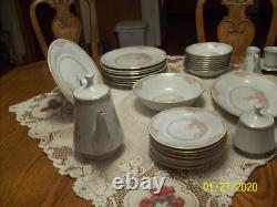 8-Salad Plates measuring 7 1/2 in diameter. 8-Coupe Soup Bowls measuring 7 1/2 in diameter. 8-Coffee cups footed measuring 3 1/8 Tall.